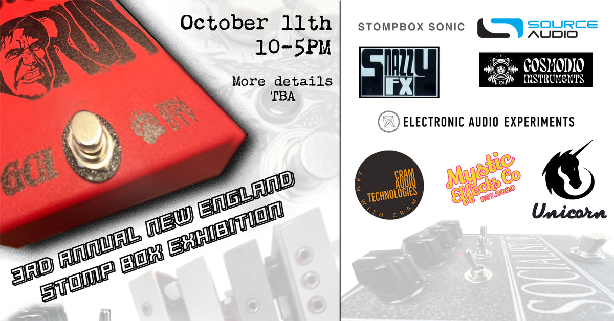 Join us for our 3rd annual New England Stompbox Exhibition. It will be a great day with local companies/makers and pedal enthusiasts alike.
