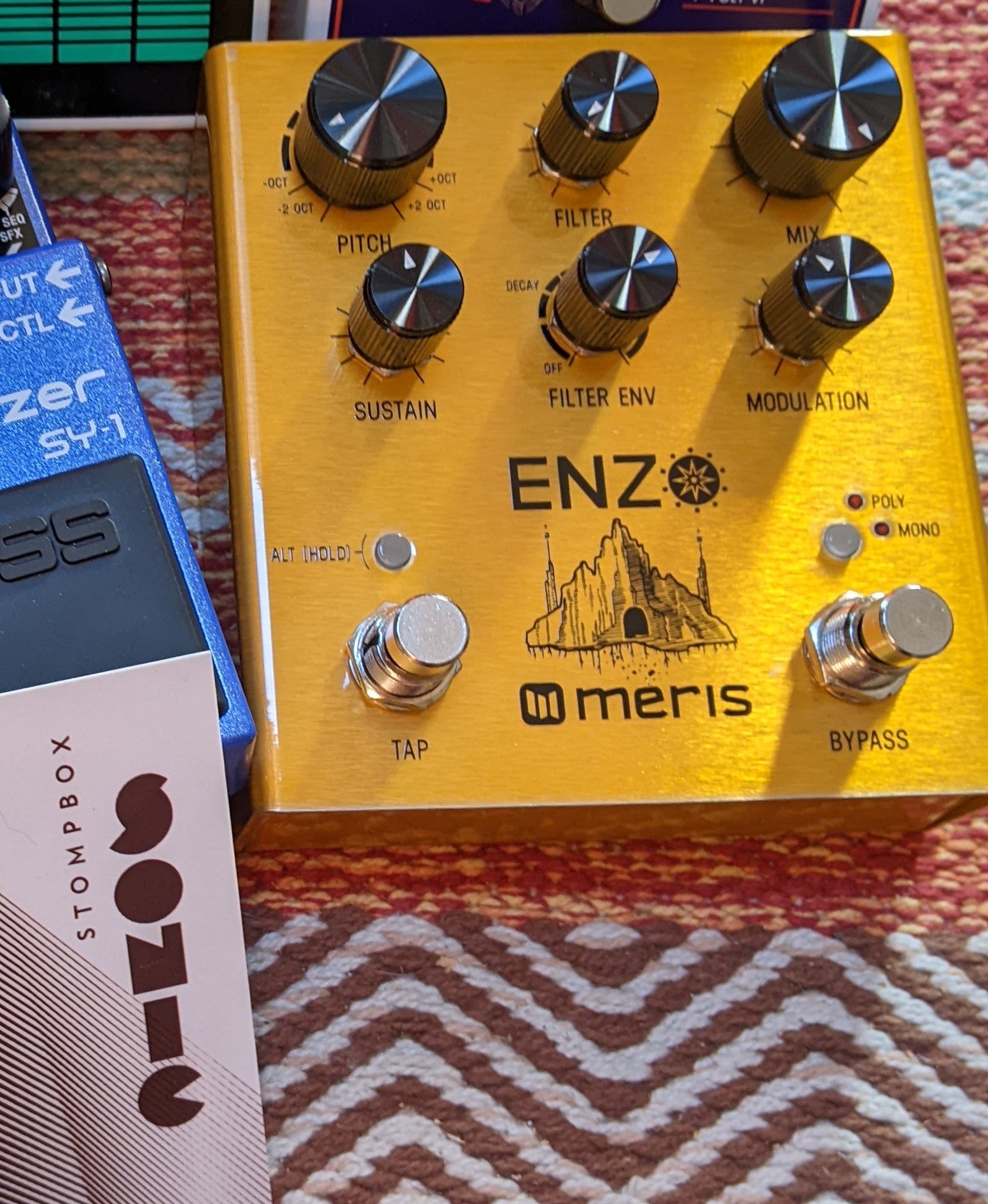 A multi-voice synthesizer that will track your guitar for tight monosynth leads, complex chord polyphony, or multi-note sequenced arpeggiation. All without any special pickup installation. Just put it on your board and discover your own reality. The Enzo isn’t limited to guitar; use it on any instrument whether drum machine, vocals or other synths. Completely transform your input signal and synthesize. Use the full synth palette of multimode analog style synth filters, ring modulation, envelopes and much much more to drive punchy, thick synth textures. Or, explore an altered state of your pure instrument signal by transforming it with pitch, time and modulation effects. Plug in to a revelation generator.